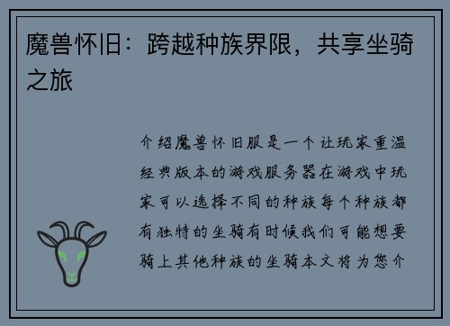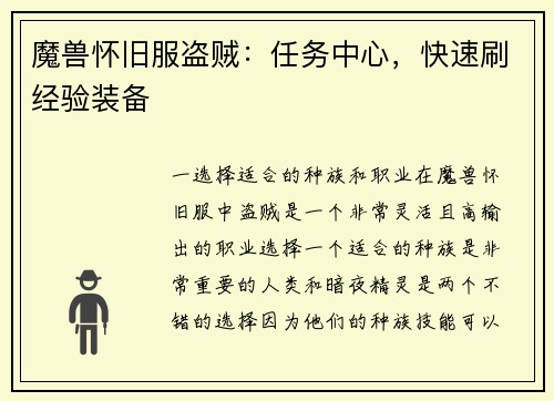 一、橙装装备的介绍 魔兽世界是一款大型多人在线角色扮演游戏,其中最高品质的装备是橙装。橙装装备在游戏中非常稀有且强大,拥有橙装可以大幅提升角色的战斗能力。要解锁橙装装备并非易事,需要完成一系列的任务和...